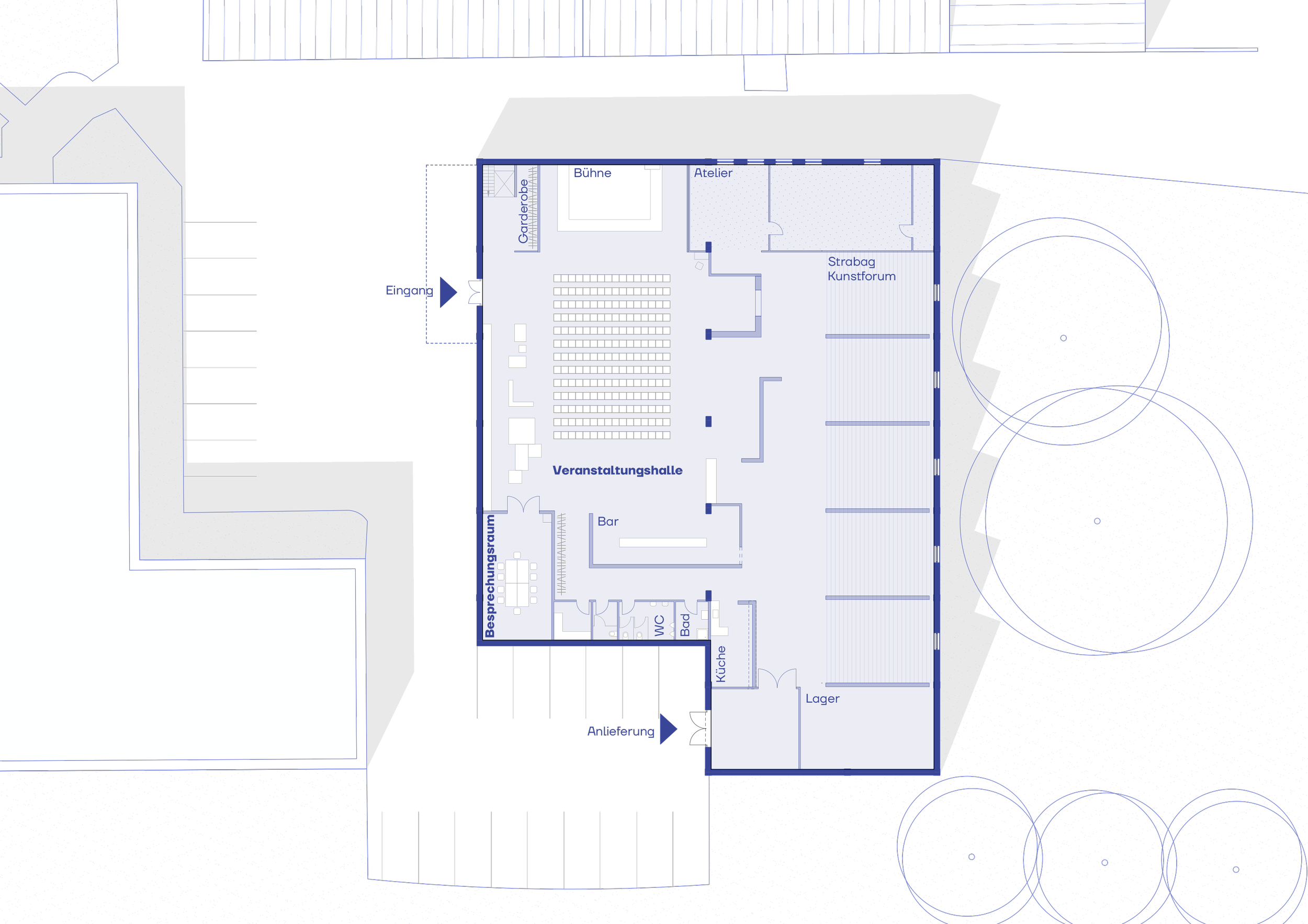 Ergänzend zur Veranstaltungshalle oder als Meetinglocation der besonderen Art steht der Besprechungsraum zur Verfügung – perfekt für kleinere Meetings oder konzentrierte Arbeitsformate.